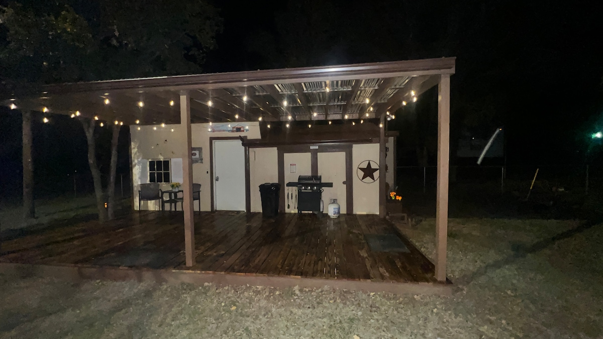 Nyd landlige omgivelser i hjertet af cowboylandet. Plads til at medbringe en hest og slappe af i ro, samtidig med at du kan rejse til mange faciliteter omkring Stephenville, Texas. (Vi er 2 miles uden for byen) Vores nye lille hjem har en behagelig seng, køkken og et sted, hvor du kan tage skoene af og slappe af. Kom og nyd en bål udenfor, sid på verandaen, eller tag en tur i området. Små hunde tilladt med forhåndsgodkendelse. Dette inkluderer et kæledyrsgebyr på 20 dollars. Op til 3 heste tilladt med forhåndsgodkendelse og hestegebyr.
