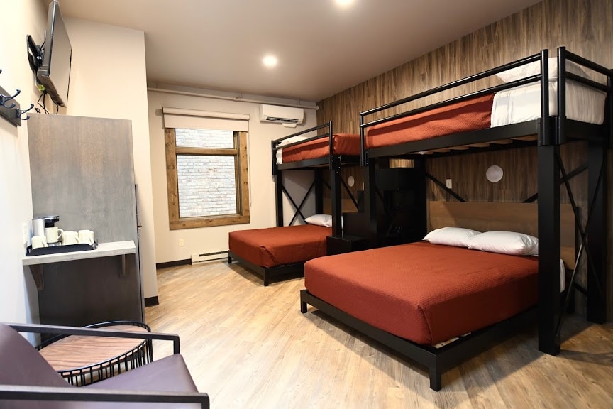 Dette fantastiske sted i downtown Grand Rapids, tilbyder MN dig en chance for at bo i et historisk motel, der genfortædes for de daglige bekvemmeligheder, der er væk hjemmefra. Hvert af vores værelser er unikke og veludstyrede med rene og komfortable senge og moderne bekvemmeligheder som tv, køleskab og mikrobølgeovn. En bistro og bar på stedet, der tilbyder håndlavede cocktails, crepes og kaffe (for ikke at nævne nogle lækre øl og vin at vælge imellem). Kom og se os til morgenmad eller en cocktail efter middagen!