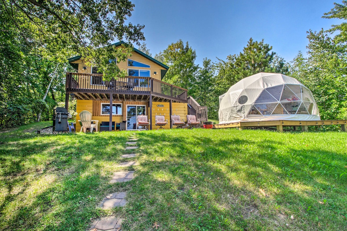 Vi er glade for at kunne tilbyde et 2-værelses geodætisk kuppelhus beliggende på 10 private hektar i Afton, MN. Nyd to nætter eller en uge i vores nyrenoverede bolig. Denne bolig har plads til 5 personer og indeholder alle de basisting, der er nødvendige for et behageligt ophold. Min. 2 nætter.
