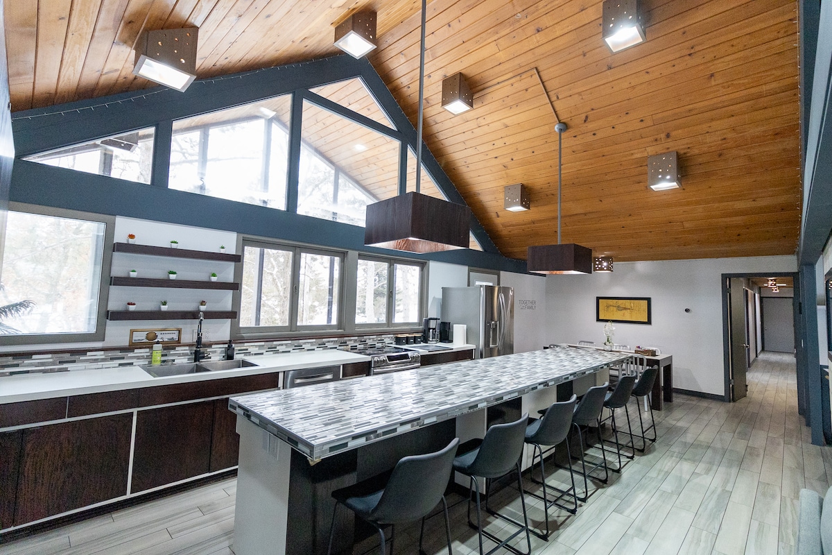 Slap af med din familie ved søen, træk din båd op til kajen! Et ægte træhus, der for nylig er blevet bygget med fantastiske faciliteter – et opvarmet spilrum og udendørs pizzaovn til hyggelige aftener! Med 10 senge og 16 sovepladser kan denne bolig rumme hele din familiesammenkomst. Nyd spabadet, jacuzzibadet i hovedbadet, eller prøv den store bruser med flere jetstråler og regnbruser. Biograf med 82" smart-tv og elektriske liggestole. Lidt over en time fra tvillingebyerne!
