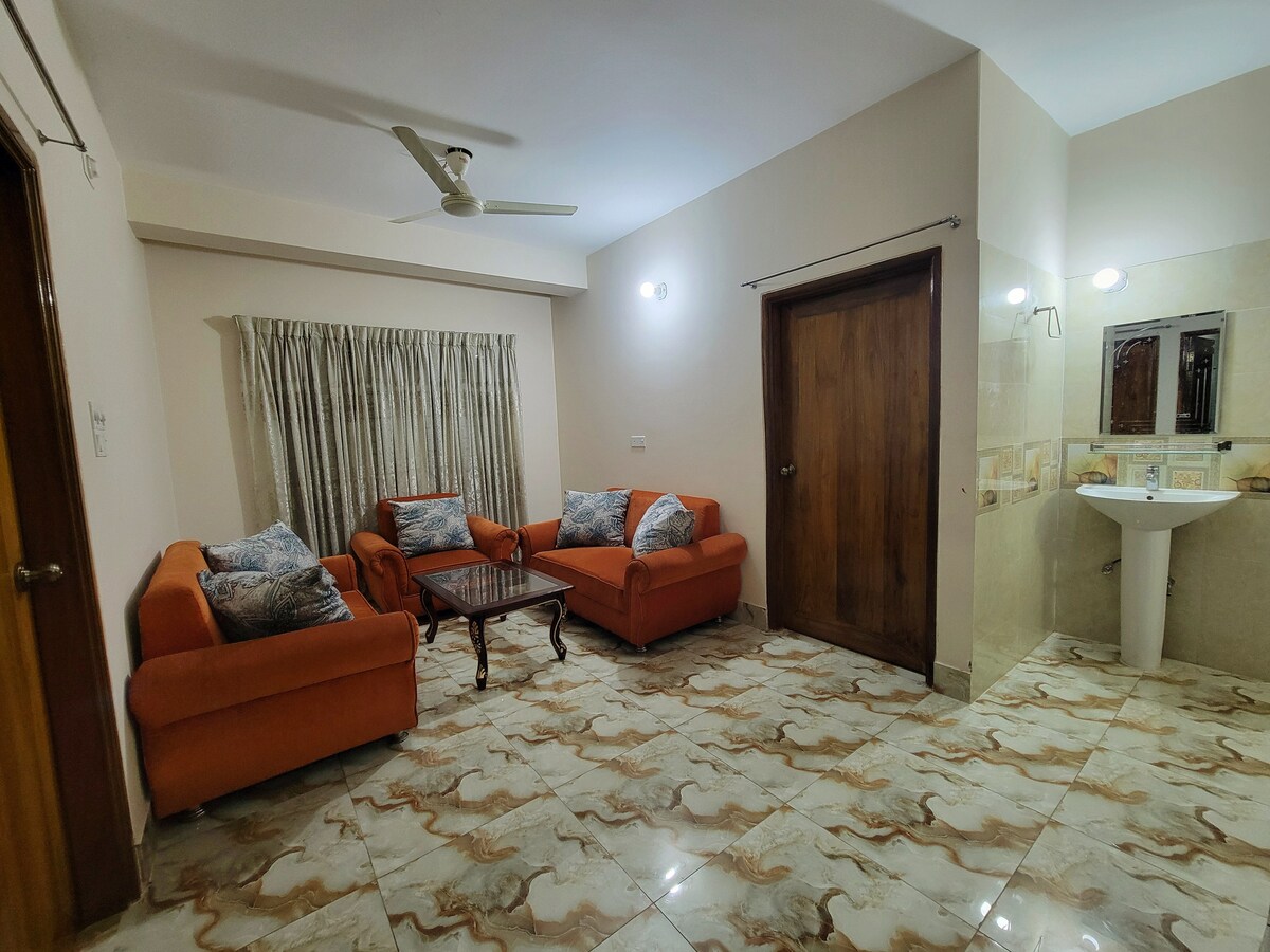 Velkommen til vores smukke Airbnb-lejlighed "Rest and retreat" Hav det sjovt med hele familien i dette stilfulde sted. Det er en lejlighed i en velholdt lejlighed, pænt indrettet, døgnåbent sikkerhedssystem og på et centralt sted i Mirpur og tæt på lufthavnen. To soveværelser, et spise- og tegnehusstue, køkken , to badeværelser og to varanda. To soveværelser er airconditionerede. Indkøbscentre og restauranter ligger i nærheden. To tv'er installeret. Du får en fredelig ferie eller arbejdstid.