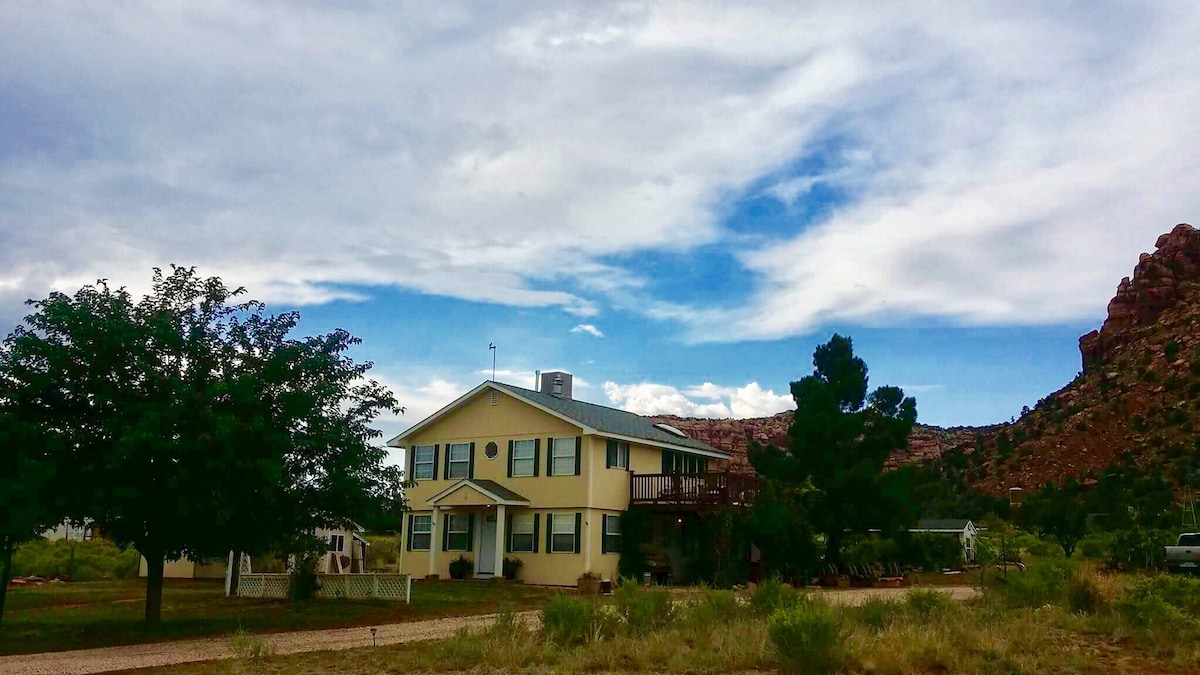 A peaceful escape to unwind during your National Parks trip. Central to Zion, Bryce, and the Grand Canyon. You will have privacy, fast wifi, stunning views, and a grocery store & brewery nearby! Enjoy the solitude of our private canyon. Fully stocked gourmet kitchen and home. Enjoy the garden & goats, coffee and breakfast fixings, fresh eggs daily & gorgeous sunsets. Relax on the deck & grill steaks, sip wine by the campfire or snuggle up with a movie in the bedroom. It’s all here!