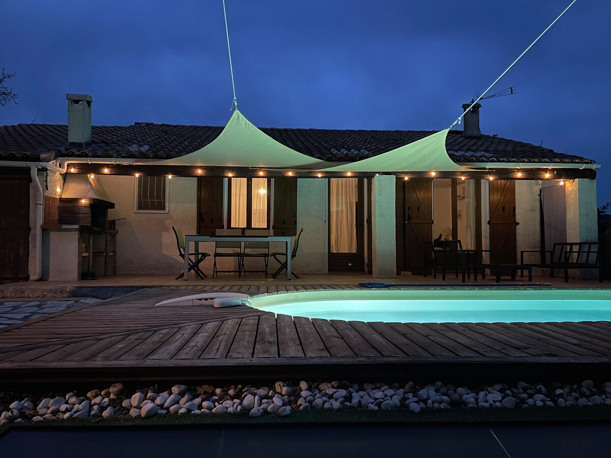 Villaen på 140 m2 ligger tæt på landsbyens centrum, på en indhegnet og træbeplantet grund på mere end 2000 m2, og er sammensat som følger: I stueetagen: Smukt opholdsrum med pejs, smukt moderne køkken, fuldt udstyret med adgang til den overdækkede terrasse, separat toilet, og en meget smuk master-suite (seng 160/200, ekstra barneseng) med privat badeværelse, med udsigt over poolen og haven. På første sal: 3 soveværelser (2 senge 140 & 1 seng 160), et badeværelse og et separat toilet.