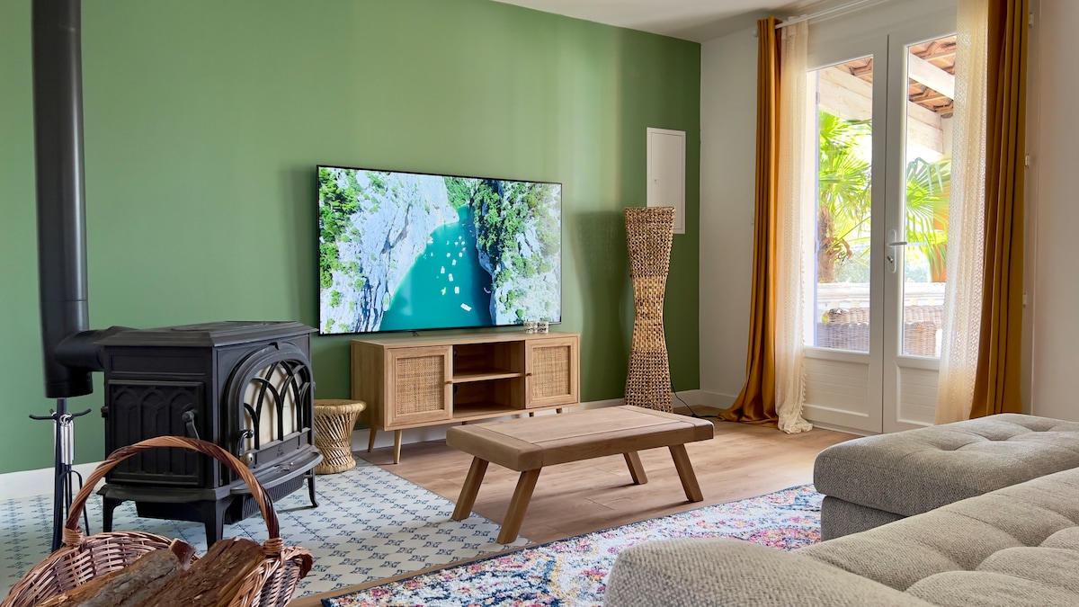🏡 Love Room en pierre – 15 m² 🛏️ Suite parentale lit 160x200 🚿 Douche italienne, WC 📺 TV 4K, Wi-Fi, clim, cafetière, bouilloire 🍳 Pas de cuisine, plancha dispo dehors et plaque a induction mobile ( utilisation extérieure a l'intérieur micro-ondes, air-fryer, presse agrumes,machine expresso 🌿 Extérieur privé 40 m² : terrasse, salon de jardin 🛁 Spa extérieur couvert (a demander en option 24 h avant 🅿️ Parking privé à l'arrière de votre cocon 🚫 Animaux et piscine non accessibles