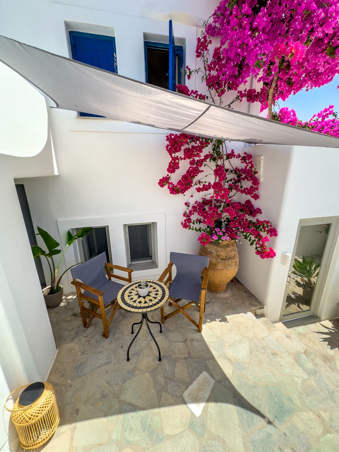 Nested in Naxos Town with stunning views out to the Aegean Sea we offer out guests the opportunity of an exclusive upretentions relaxing experience. Within easy reach from island’s famous PORTARA and Venetian Castle. Our philosophy is to offer first-rate hospitality coupled with unrivaled privacy. Much more than a home our deluxe suite offers supreme comfort combined with elegance style and unique Greek hospitality. it’ s warm minimal lines create a relaxing atmosphere.