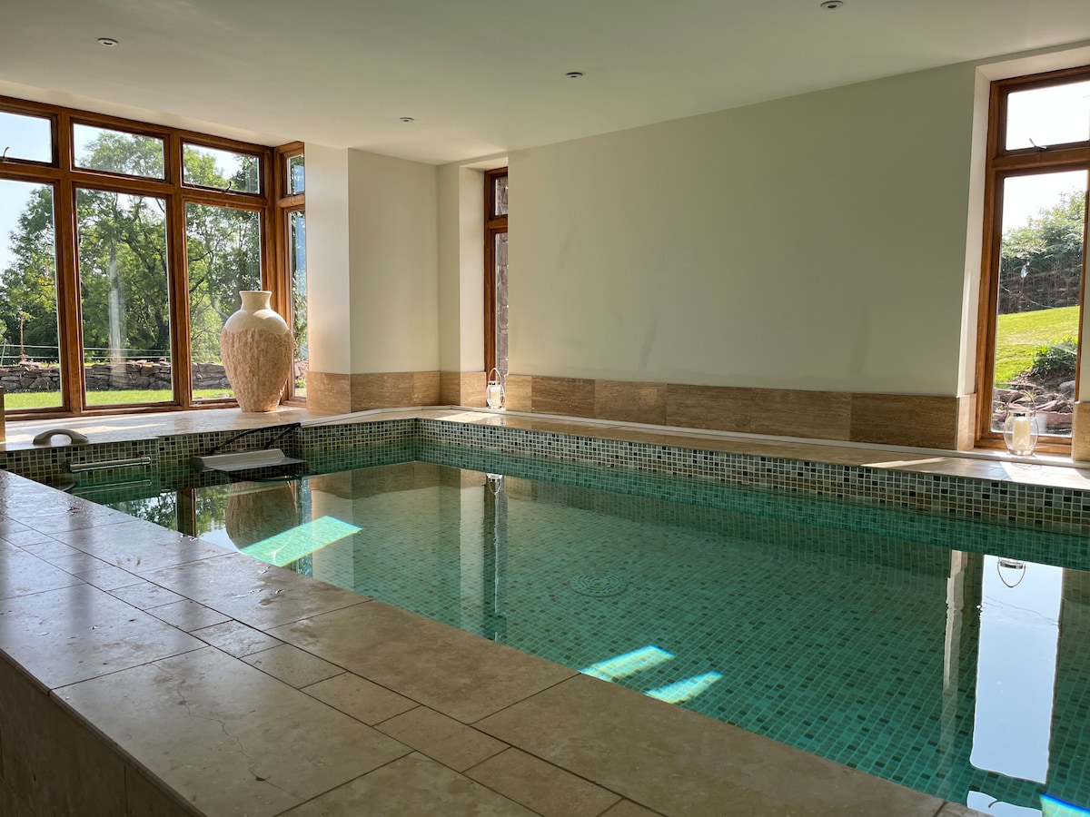 Tag på ferie til Wye Valley med vidtstrakte udsigter, skovvandringer lige uden for døren og fuldstændig ro. Perfekt til afslapning eller udforskning med mountainbiking, kanosejlads og paddleboarding i nærheden. Nyd den opvarmede indendørs pool med hurtigbane efter en hel dag med aktiviteter. Fuldt ud tilgængelig for kørestolsbrugere overalt. Tæt på Monmouth, Usk og Chepstow, og der er prisbelønnede pubber og spisesteder kun en kort køretur væk. En velopdragen hund er velkommen. Der er en anden hund på stedet.