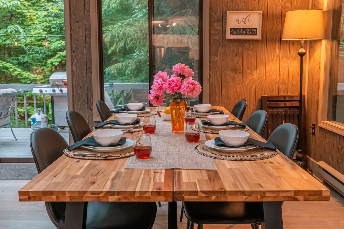 **Bedømt som "Bedste Airbnb i PA" af House Beautiful, 2022** Kom og bo i en af de mest charmerende hytter i Poconos. Denne bolig med 2 soveværelser (plus sovehems) og 2 badeværelser er stilfuld, familievenlig og veludstyret med alt, hvad du har brug for. Klimaanlæg for at holde dig afkølet om sommeren og en pilleovn til de hyggelige vinteraftener. En behagelig kælder har en ekstra brændeovn og bordtennisbord. Udenfor er der en stor terrasse, et spabad til tre personer og en åben ildsted.