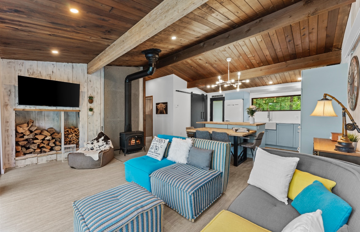 Rifugio er det ideelle sted at søge tilflugt. En oase af fred midt i naturen omgivet af bjerge så langt øjet rækker. Rifugio giver dig friheden til at skabe en autentisk forbindelse til naturen og nyde kvalitetstid alene eller med andre. Så snart du går ind af døren, bliver du budt velkommen i en varm og behagelig atmosfære. Store vinduer giver en smuk udsigt over de omkringliggende bjerge, og i det fjerne kan vi se spidsen af Lac Mégantic.