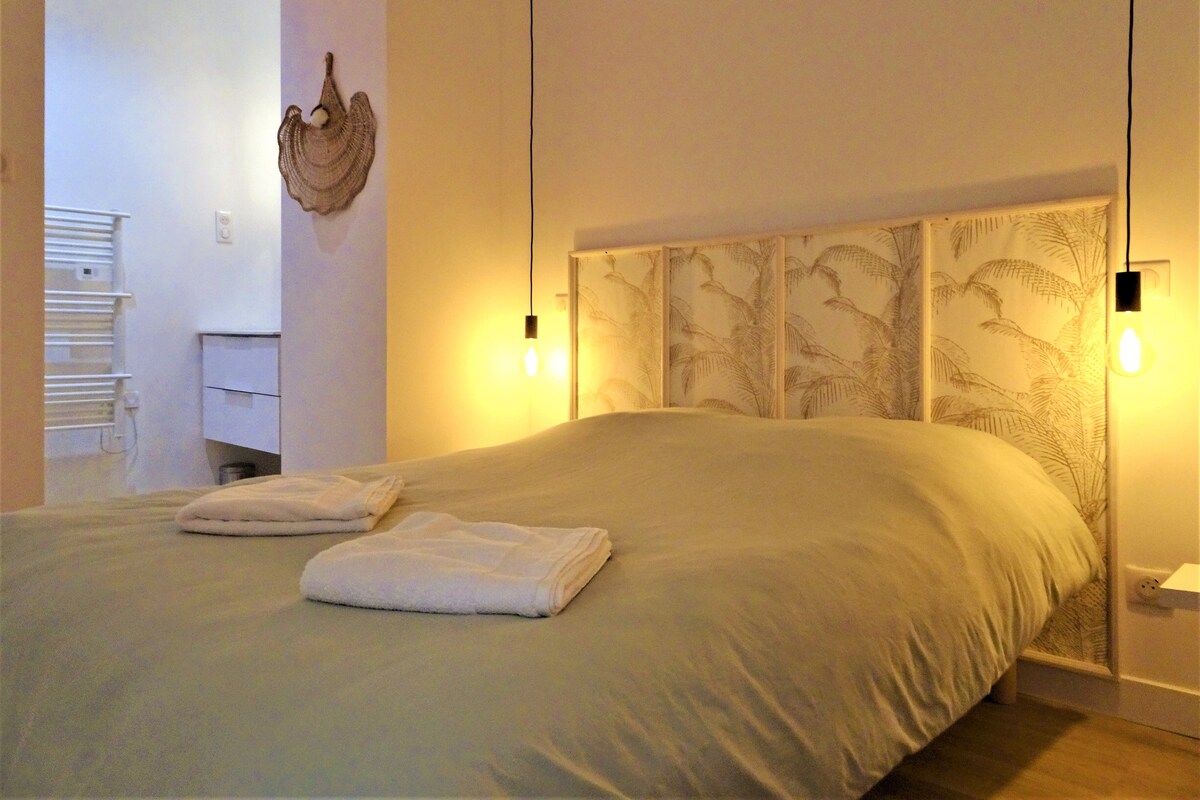 Studio "Aventurine" Bo i denne rolige lejlighed i stueetagen i en renoveret bondegård. Lille terrasse og adgang til haven. 7 minutter i bil fra ringvejen eller byens centrum. Stor parkeringsplads lige foran huset. Reversibel aircondition. Komfortabel seng på 160 cm. Separat badeværelse med et stort brusebad. Smart TV. Senseo kaffemaskine. For din sikkerhed er den fælles terrasse og parkeringspladsen under videoovervågning. Ingen rengøringsgebyrer.