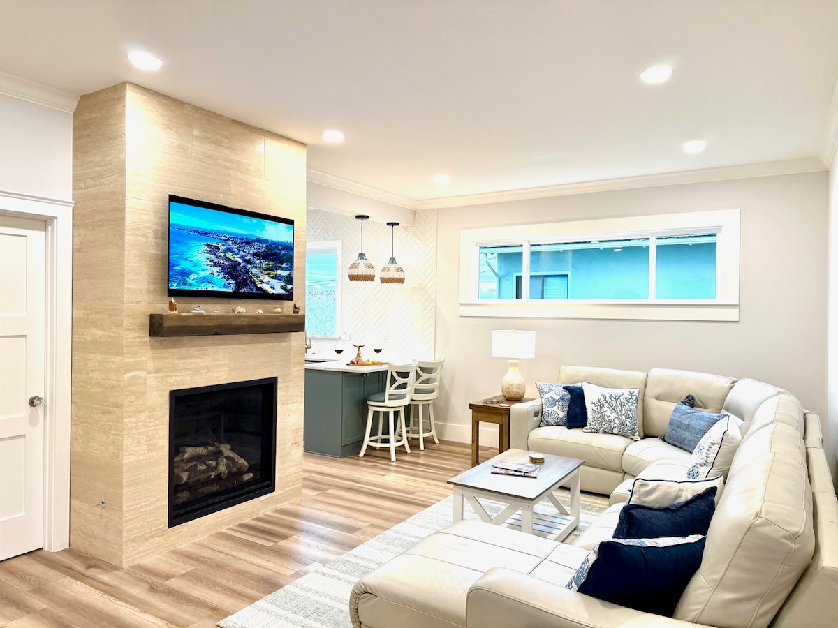 Sea breezes and unobstructed 180-degree ocean views greet you from the private deck of RdM Lookout, a brand-new beach property with a bright open, mid-century modern beach design complete with a cozy fireplace hardwood floors, and quartz counters. A comfortable, chic space, guests tell us they love the amazing beds, soft linens, fluffy towels, and our gourmet kitchen with a stocked coffee bar with to-go cups for long beach walks. Come home to a relaxing, beach vacation in a charming beach town.