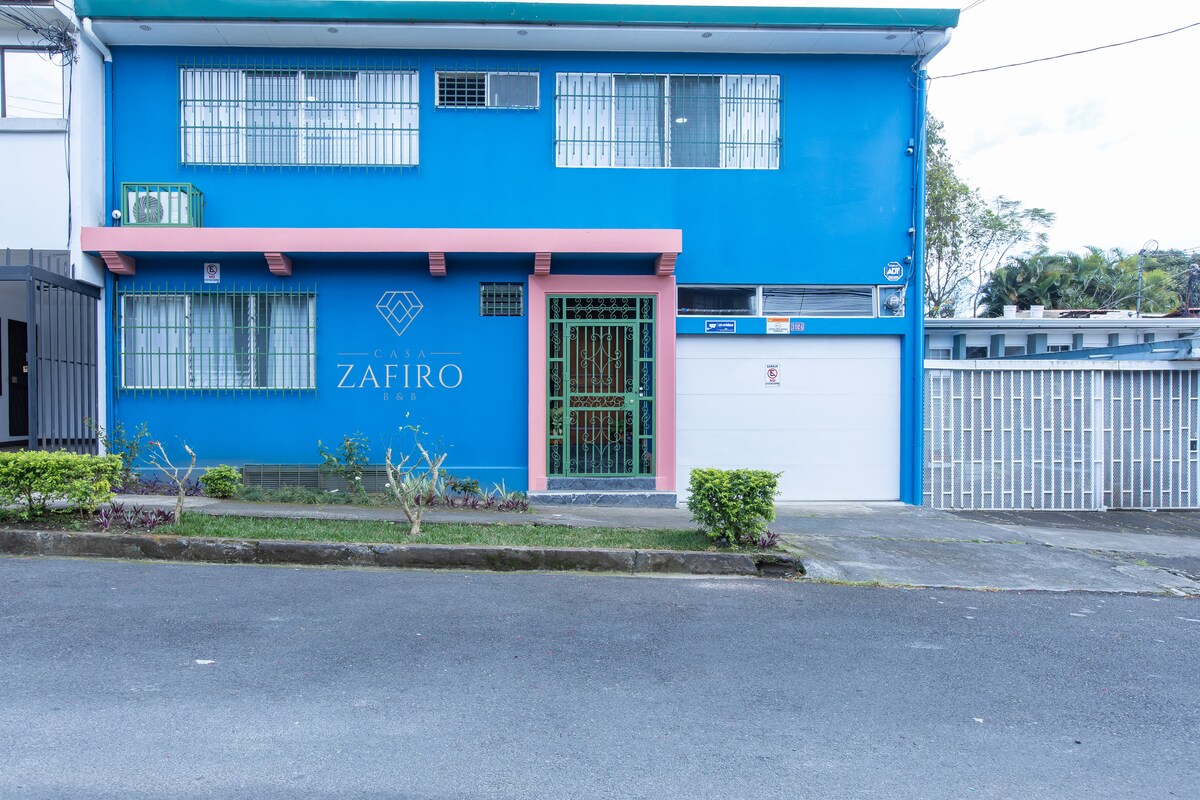 Bienvenidos al nuevo B&B recién inaugurado "Casa Zafiro". Tenemos mucha ilusión de contar con su presencia. Nuestro establecimiento tiene un aire hogareño, pero al mismo tiempo un matiz decorativo muy actual. Estamos ubicados en una zona privilegiada de San José, segura y con muchos puntos de interés social y cultural, para conocer tanto de día como de noche esta bella ciudad.