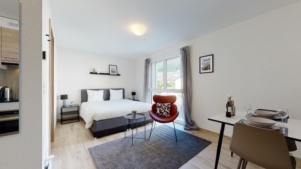 4,55 ud af 5 i gennemsnitlig bedømmelse, 11 omtalerLys atelierlejlighed 404 i centrum af Aigle