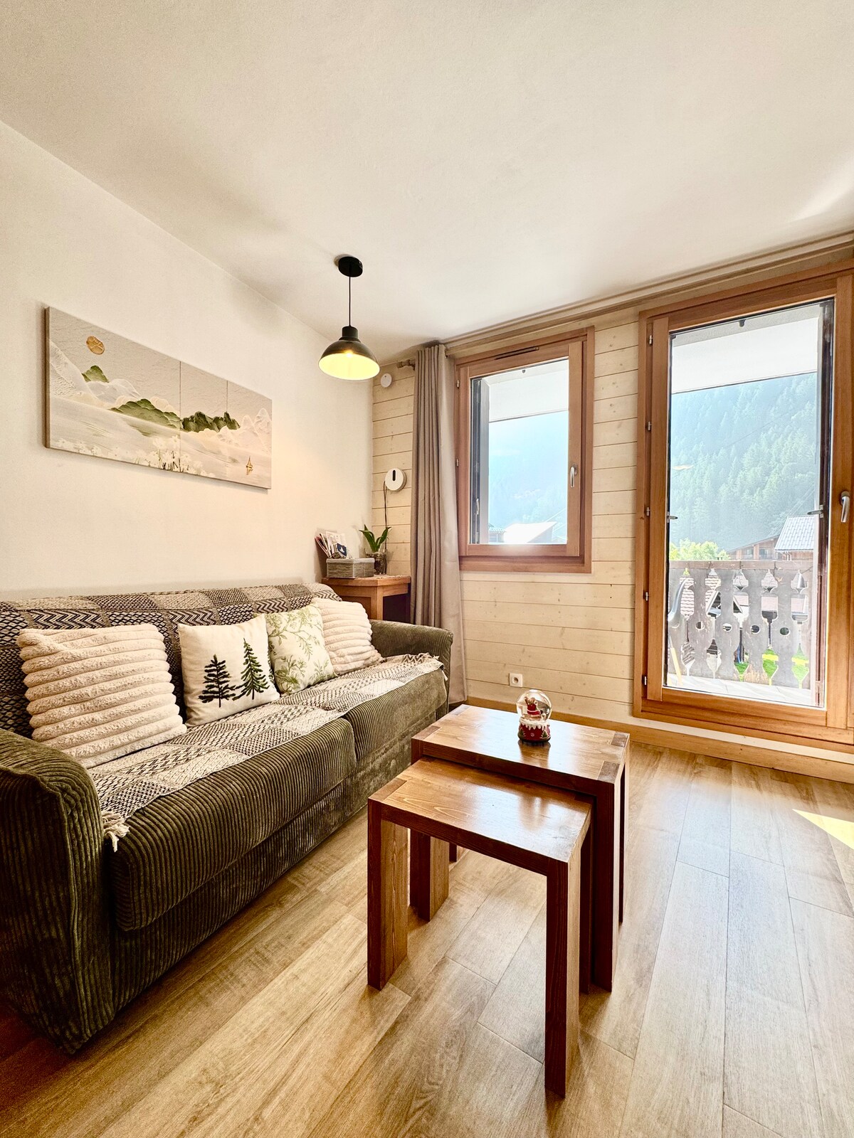 Hyggeligt studie med udsigt over Aravis / Grand Bornand