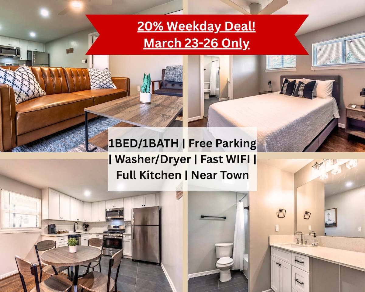 Mesterligt design og moderne elegance er unikt indbegrebet i denne smuttur. Boligen har et åbent layout, smarte møbler, lyse neutrale og kontrasterende farver med en overordnet moderne æstetik. ✔ Beliggende i hjertet af Montrose, få minutter fra centrum/ midtbyen ✔ Walkscore af 91 - Du kan rejse overalt til fods! ✔ Plads til 5+ gæster på 2 kingsize-senge og en sektionssofa ✔ 75" Smart TV med GRATIS Netflix, Hulu, Disney+, ESPN ✔ Højhastigheds 1 Gbps Fiber Wi-Fi-internet ✔ Gratis reserveret parkering på privat grund