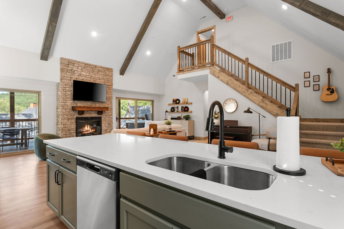 Velkommen til The Tree + House på Indian Point! Dette skræddersyede luksuriøse trætopshus blev bygget med komfort og afslapning i tankerne. Det er perfekt til op til fire gæster, og det er omgivet af skov og fyldt med naturligt lys fra gulv til loft-vinduer, der viser en fantastisk udsigt over Table Rock Lake. Du vil føle dig gemt væk i dit eget private fristed, men stadig kun få minutter fra vandet og Silver Dollar City. Det er den ideelle blanding af fredfyldt natur og moderne stil.