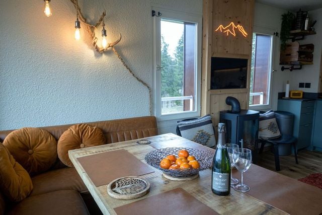 På 1100 meters højde, inkluderet i Grand Massif station og lige i nærheden af skilift. 23,7 m2 lejlighed med 1 separat soveværelse og ny sovesofa i stuen. Dejlig og rolig terrasse mod sydvest. 1 skirum i stueetagen. Supermarked, udlejning af sportsudstyr, barer og restauranter åbne om vinteren og sommeren. Raclette-, fondue- og pandekagemaskiner Sengetøj og håndklæder er inkluderet