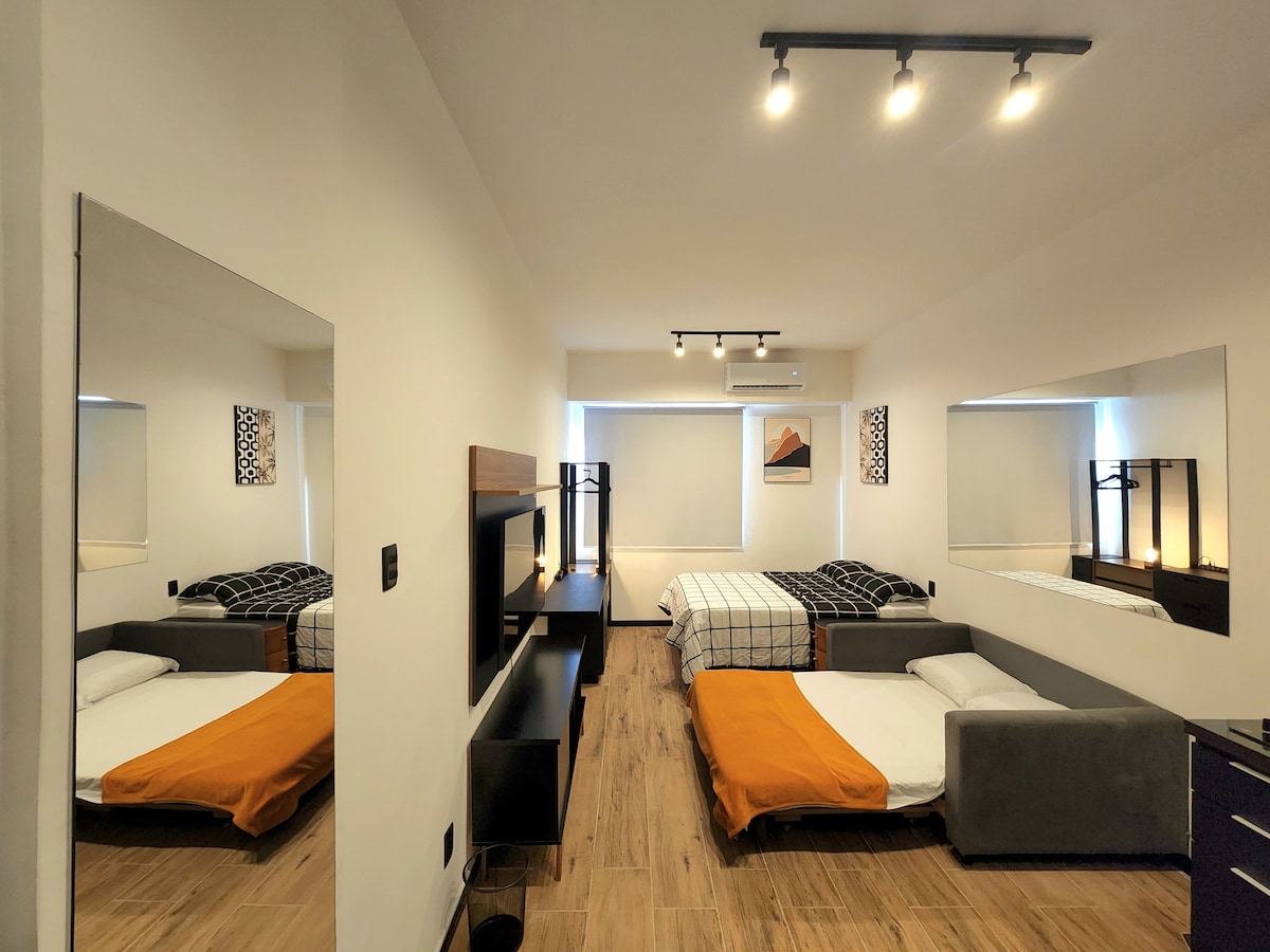 Superluksuriøst og godt indrettet. Hvis du leder efter en udsøgt pause, er den her! Finishen og detaljerne, herunder originale kunstværker i denne oase, giver en 5* stemning. En iPad styrer den 108" store skærm og underholdningscenter, aircondition og lysstemning. Fine Trousseau-bomuldshåndklæder og sengetøj fuldender oplevelsen. Strand, offentlig transport, supermarkeder, apoteker, LGBT+-barer og restauranter lige uden for døren. Indgang med dørkode og overvågningskameraer døgnet rundt giver fred, privatliv og sikkerhed.
