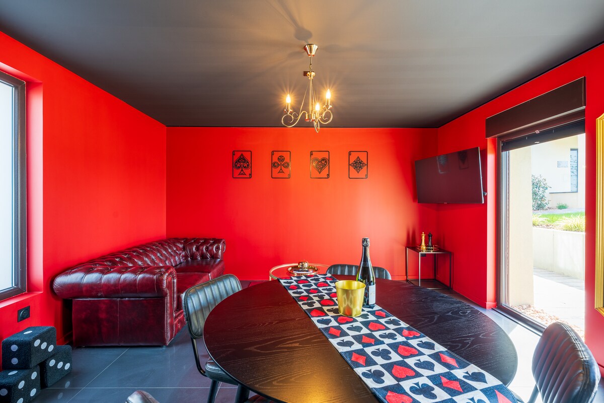 Denne bolig har en helt unik stil. En luksuslejlighed til øjeblikke af afslapning og intimitet i luksuriøse omgivelser. En stue, der åbner op til et køkken, der er udstyret med en kæmpe videoprojektor og en hjemmebiograf, så du kan fordybe dig i en afslappende aften. Rummeligt værelse med en QueenSize seng (160x200) sikrer komfort. Et luksuriøst badeværelse med italiensk brusebad, herunder en jacuzzi til 3 personer og en sauna til 3/4 personer med direkte adgang til soveværelset.