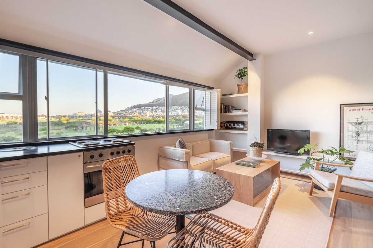 Denne sublime lille atelierlejlighed er en fejring af livets enkle glæder - at ligge i sengen og lytte til havet; læse udstrakt på sofaen; filmaften på sovesofaen. Den er også ideel til hjemmearbejde med sin stærke og ubegrænsede fiber-wifi. Træd ud af din dør på promenaden, og det er en meget kort gåtur væk fra V&A, Green Point Park, Oranjezicht-markedet ... for ikke at nævne kaffebarerne, restauranterne, strandene og bjergene. Kom nu, forkæl dig selv!