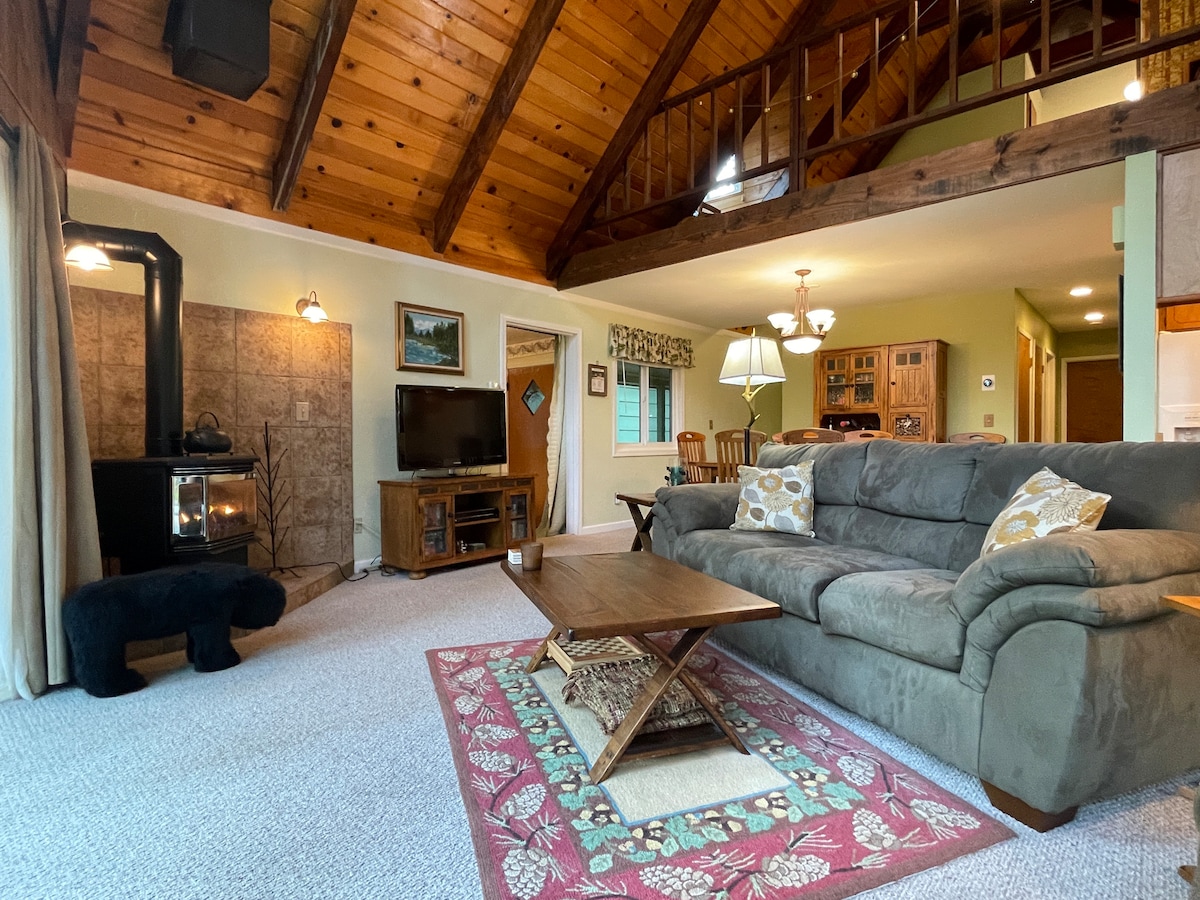 Vores charmerende hytte ligger på en privat vej med betagende udsigt over højderyggen, kun 20 minutter væk fra Lassen Volcanic National Park. Fordyb dig i naturen, når du vandrer til Lassen Peak, Bumpass Hell og Cinder Cone. Med mindre end en times kørsel kan du opleve Burney Falls' skønhed eller fiske ved Hat Creek. Om vinteren kan du nyde sneleg på Eskimo Hill eller tage dine snesko på og udforske vinterlandskabet omkring Manzanita Lake. Benzin/dagligvarer ligger kun få minutters kørsel væk.