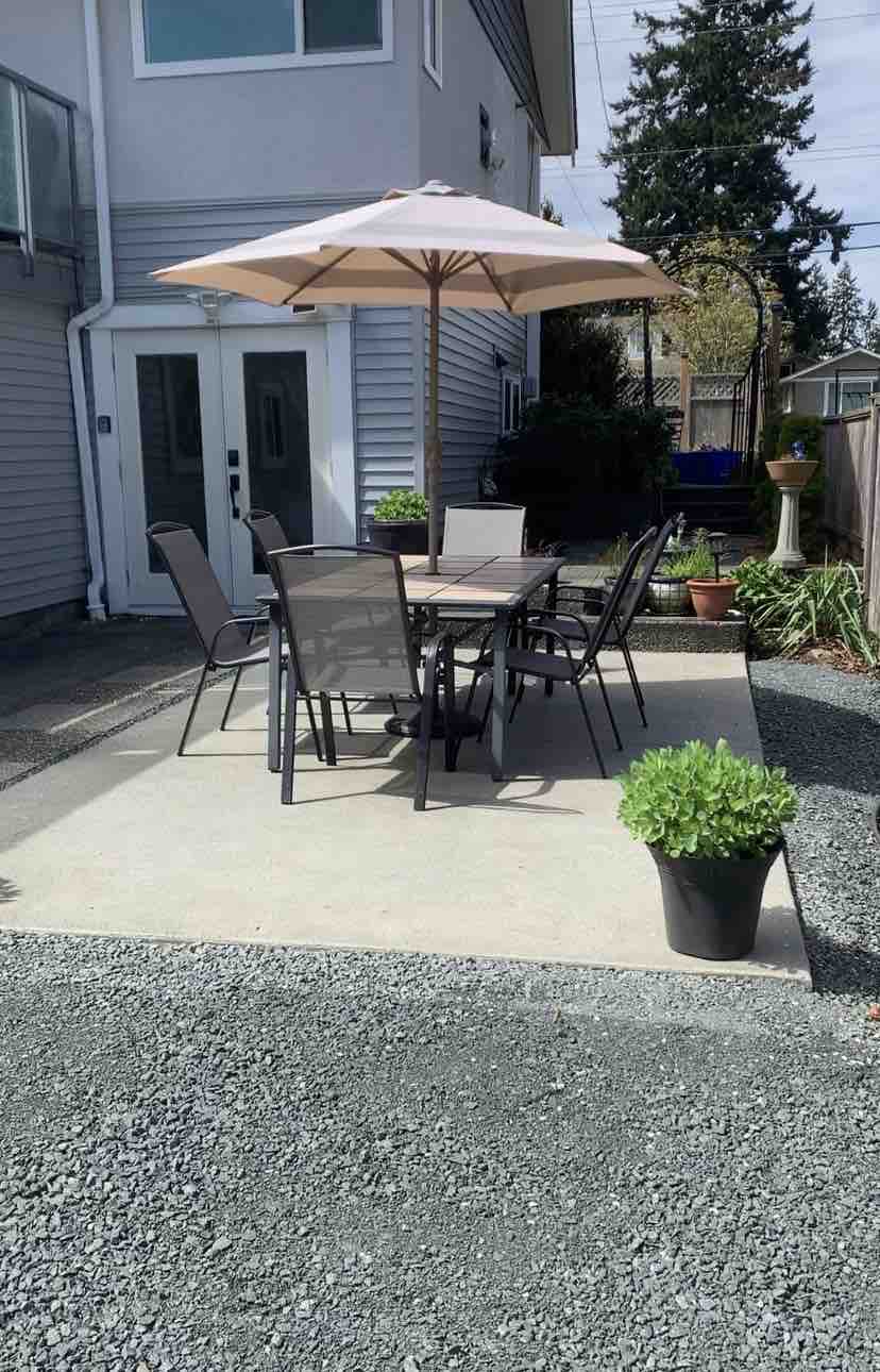 Velkommen til vores murstenshus i smukke Campbell River. Funktioner: Privat indgang til suiten. Meget komfortabel kingsize-seng. Tekøkken fyldt med alle de basale ting. Spiseplads. Privat overdækket terrasse med grill. Separat brusebad. 2 stk. Badeværelse. Sofa. TV (kun Netflix wifi) EV-parkering i nærheden. Boligen er centralt beliggende og kun et par blokke fra centrum, gåafstand til den berømte fiskeribro for is om sommeren, fine spisesteder. En blok op fra Island Hwy.