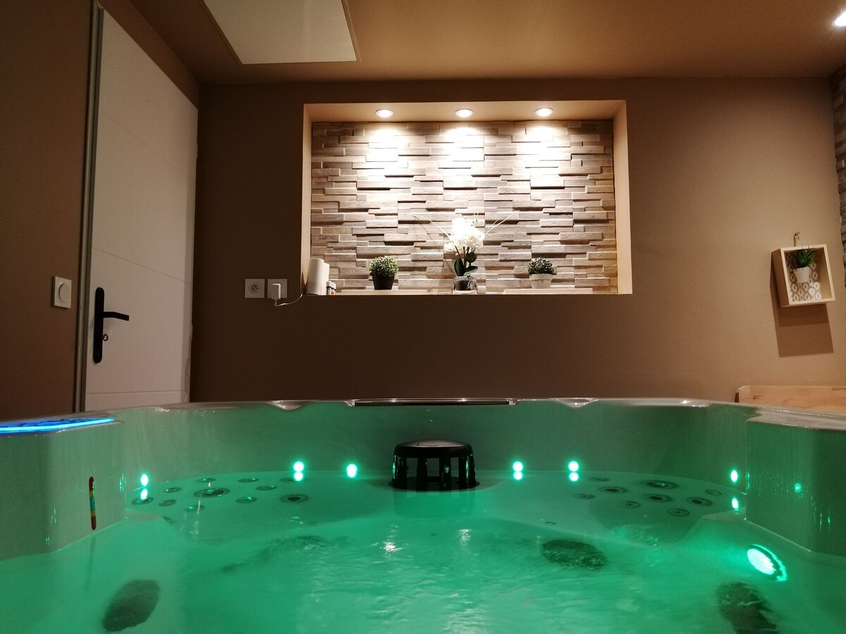 Kom og slap af i dette charmerende hus, som vil være det perfekte sted for et ophold, der kombinerer velvære og zen! Med en varm indretning og plads til 4 personer, består huset i stueetagen af et afslapningsområde med jacuzzi. På første sal finder du en stue med sofa, spiseplads og indrettet tekøkken; et første soveværelse med dobbelt queensize-seng; et andet soveværelse med 2 enkeltsenge; samt et badeværelse med bruser.