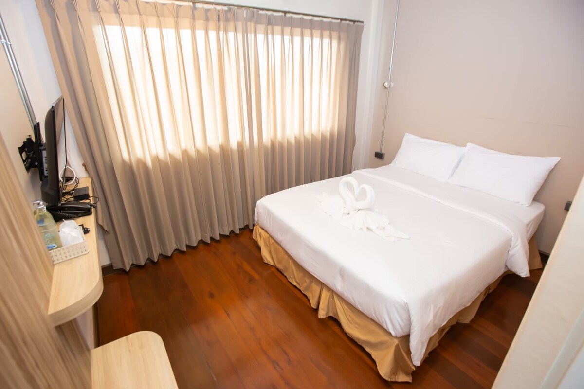 Everything you want to explore is right outside the door of this place 23m² City View Hotel Room, Quiet and Clean Stay 🛏 1 King bed, sleeps 2 🏙 City view 🚿 Shower with water heater 🤫 Quiet and clean atmosphere 🛋 Shared lobby lounge with plenty of seating 🍽 Shared canteen with complimentary coffee, tea, and drinking water 📶 Fast Wi Fi + Smart TV