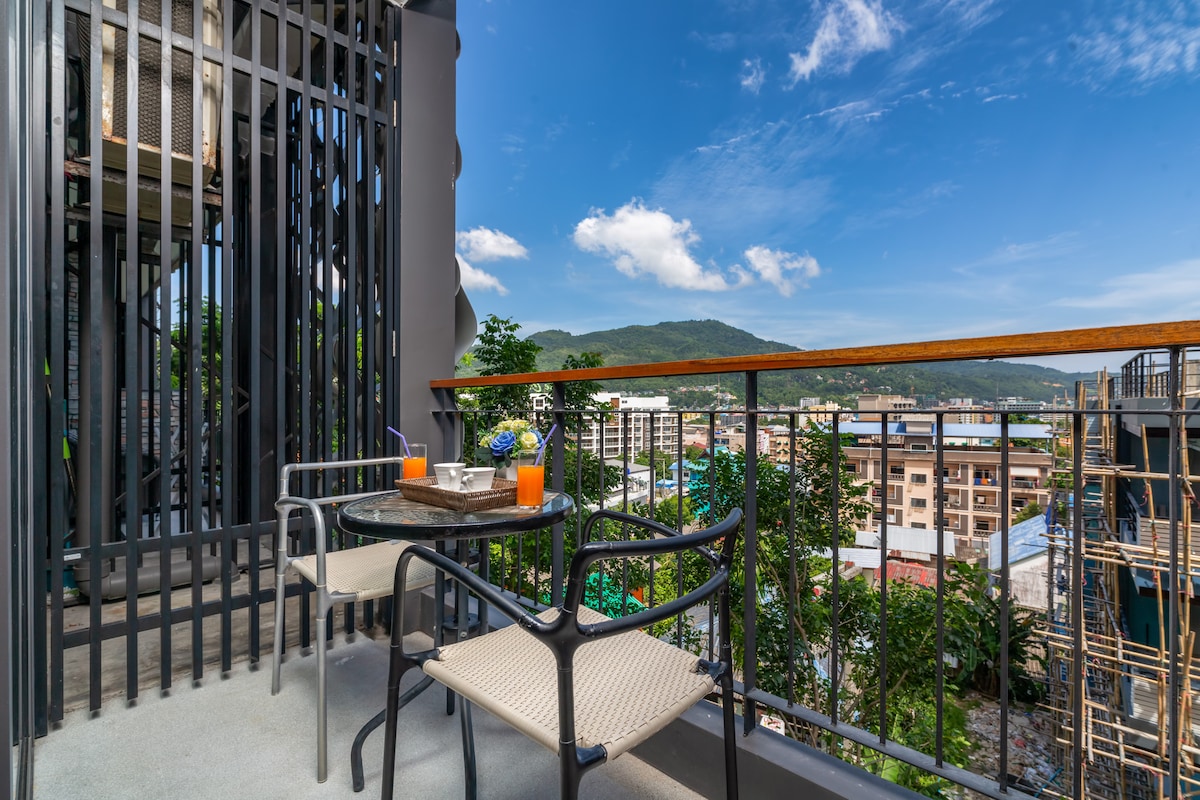 Stilfuld studiolejlighed med naturskønt bybillede @Patong