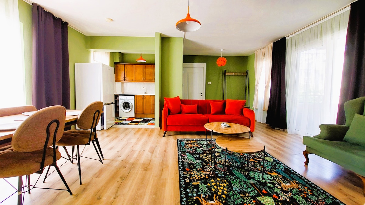 Beliggende i centrum af Akyaka, væk fra støj fra centrum, Esen Apart, vores virksomheds Begonvil-type lejligheder har plads til 4 personer. Alle vores lejligheder har køkkenredskaber, aircondition, tv, wi-fi som standard. Der er en dobbeltseng,to enkeltsenge.