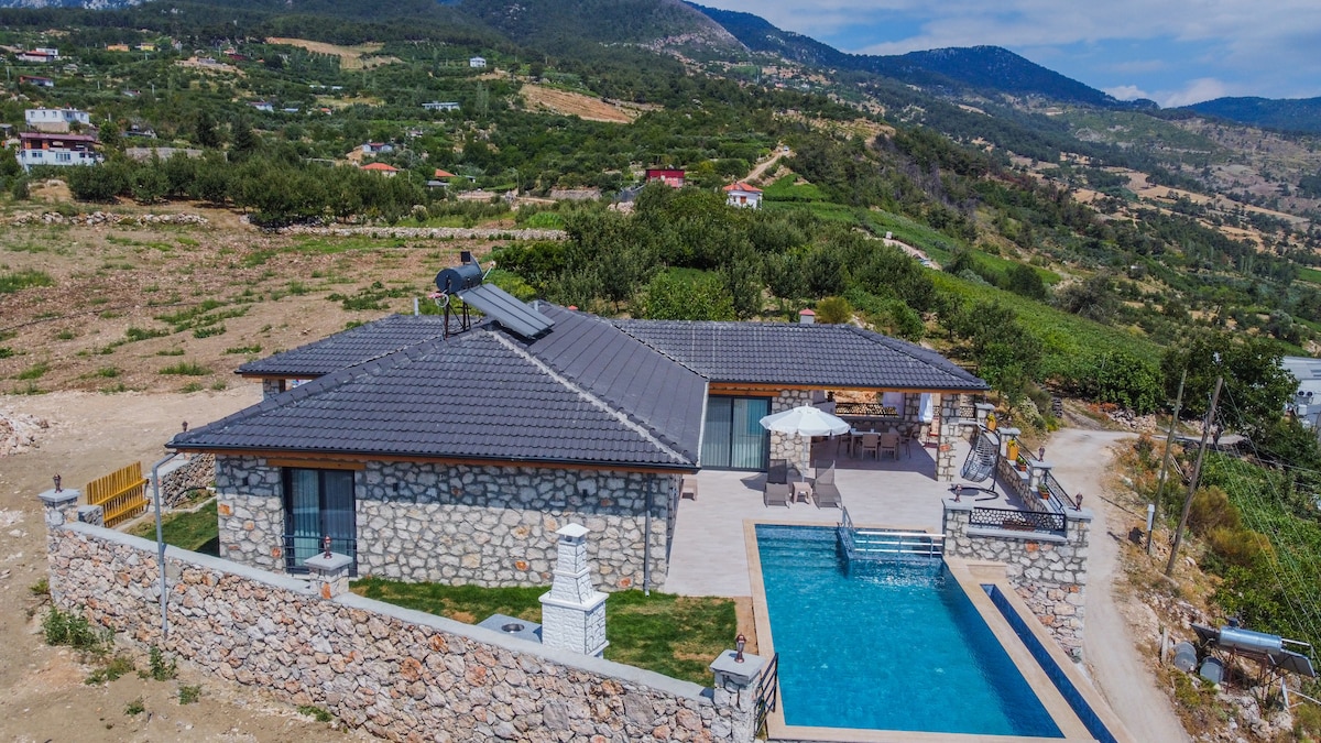 Vores villa, som vil give dig den ferieoplevelse, du leder efter med sin friske luft i fuglekvitter, der omfavnes af vores gæster af det unikke naturlandskab, der tiltrækker opmærksomhed med sin stenarkitektur i Muğla Fethiye land ferielandsby, har en stor swimmingpool til 6 personer med jacuzzi og en rummelig og komfortabel stue med 3 soveværelser, 2 en-suite og et normalt badeværelse, alt er designet præcis, som du ønsker det.