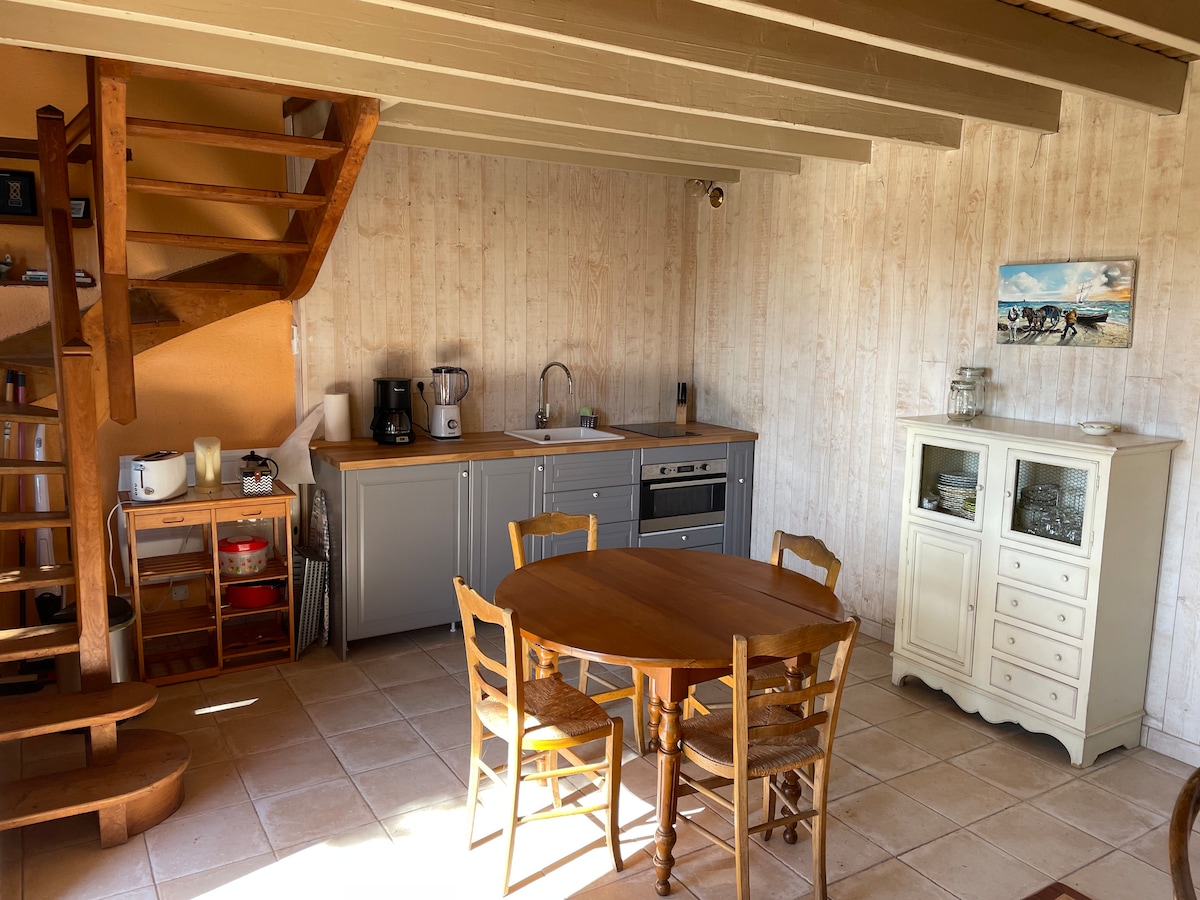 Charmerende lille hus på 30 m², der lige er blevet renoveret, med en smuk have lige ved havet, 10 minutters gang fra byens centrum. Hav, hvile og afslapning vil være nøgleordene for dit ophold. Du kan svømme på stranden nedenfor, gå en tur på diget eller i Coutains centrum, fiske, betragte solnedgangen fra haven med et glas i hånden, højt og lavt tidevand i løbet af dagen, hvad mere kan man ønske sig...?