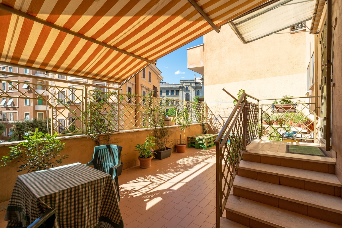 REGISTRERET I LATIUM-REGIONEN: identifikationskode 4554. CIU: ATR-005048-5 Aircondition fra 1. april til 30. september. Kig ud over terrassen, og nyd den spektakulære udsigt over Rom og dets monumenter. Raffinerede overflader, elegante møbler og smukke originale grusgulve giver værelserne den klassiske og herlige smag af hovedstaden. Indenfor er der en toværelseslejlighed med aircondition, et separat soveværelse og en smuk stue, hvor en behagelig sovesofa kan rumme andre mennesker