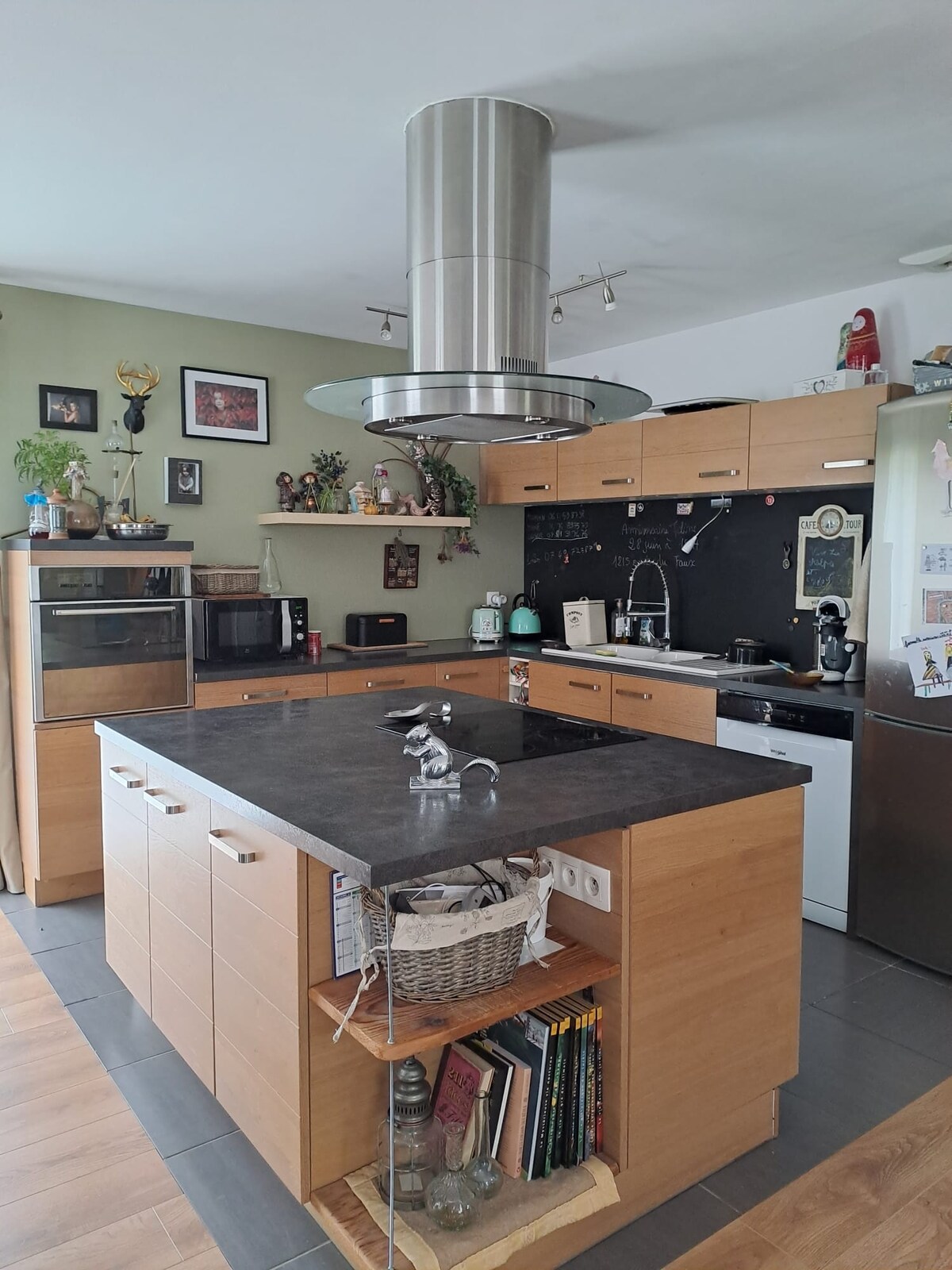 Studio indépendant de notre maison. Vous entrez par la salle de vie avec baie vitrée offrant une belle clarté et équipée de rideaux occultant afin d'obtenir l'obscurité souhaitée. Jolie terrasse en bois, abritée. Cuisine équipée : plaques de cuisson, hotte , four, réfrigérateur, micro-onde, cafétière, bouilloire. Chambre lit double, penderie, bloc rangement. Salle de bain douche/lavabo/WC. Place de parking et accès portillon dédié.