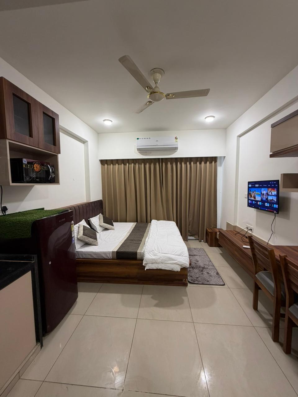 Luxe Spacious Studio by CASA NESTA at main mahal road • 43 inch Sony Smart TV with OTT subscriptions included • High-speed 100 MBPS WI-FI • Oil Heater • Toiletries • Includes COFFEE MACHINE, AIR FRYER,Toaster, cookware & utensils • Fridge, kettle, Microwave & all basic cooking essentials • Beautiful aesthetic mirror ideal for pictures and couple moments 24×7 food delivery available via Zomato & Swiggy • 24×7 cab & bike services available (Ola ,Uber,Rapido)