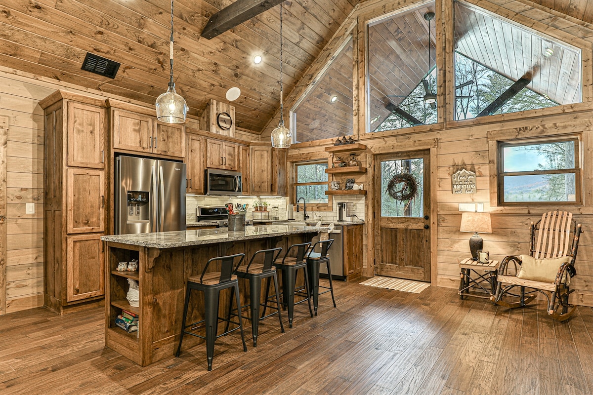 The Barn på Haynes Hill | Ellijay-hytte The Barn at Haynes Hill er en enestående hytte i Ellijay i North Georgia Mountains, som bliver færdigbygget i april 2025. Denne smukt renoverede lade kombinerer rustik charme med moderne komfort og skaber et unikt bjergophold omgivet af natur og de fredfyldte lyde fra Tails Creek. Vågn op til sollys, der strømmer ind gennem de store vinduer, nyd en kop kaffe på den private terrasse med bjergudsigt, og slap af om aftenen i luksuriøst sengetøj, der er designet til et afslappende ophold.
