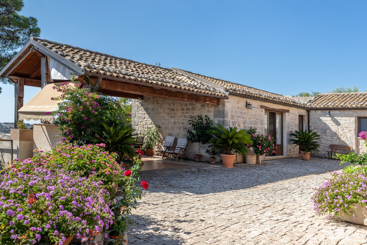 Unikt stenhus fra det 18. århundrede, stilfuldt restaureret og sikkert beliggende på en familieejendom på 50 hektar. Dette idylliske og meget private skjulested ligger på kanten af Irminio-kløften og har udsigt over havet. Det er ikke som nogen anden ejendom, du finder i området. Casa u Ventu er perfekt til romantiske udflugter og er en drømmeoplevelse i hjertet af det sicilianske landskab, 5 minutter fra strandene Donnalucata og Playa Grande og 10 minutter fra centrum af Scicli. 360* udsigt.