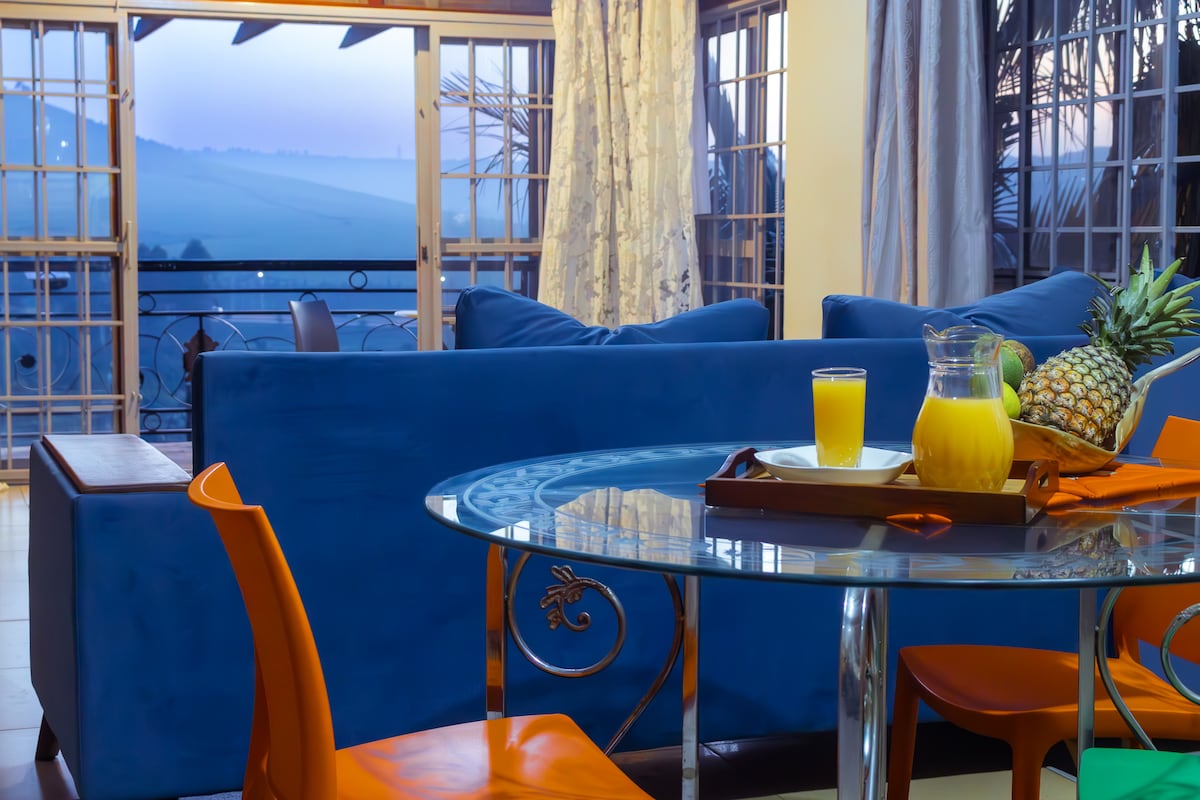 Flygt til denne luksuriøse lejlighed ved søen med 1 soveværelse, kun 20 minutter fra Entebbe International Airport. Perfekt til en weekendferie og ideel til fjernarbejdere, der søger en fredfyldt, stilfuld atmosfære. Der er queensize-dobbeltseng, fuldt udstyret køkken, moderne badeværelse, højhastigheds-wi-fi og en hyggelig stue med smart-tv. Nyd problemfri komfort, moderne faciliteter og et fredeligt miljø til arbejde eller afslapning. Dette elegante tilflugtssted lover komfort og ro til din ferie.