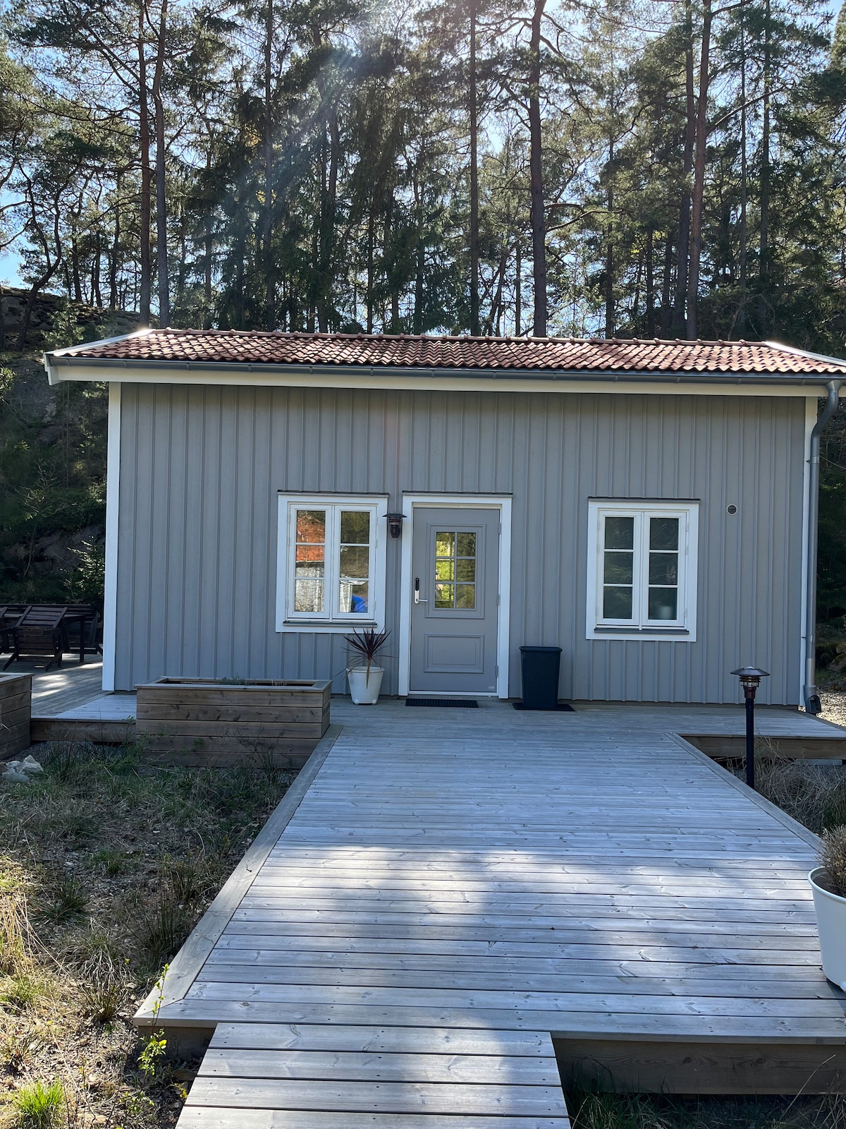 Slappna av i detta unika och lugna boende med utsikt som sträcker sig över hela askimsfjorden ända ut till Tistlarna. Här kan ni sitta och studera naturen, skärgården, höra måsarnas skri till morgonkaffet och gå ner och ta ett morgondopp det första ni gör. Barnen kan röra sig fritt i området då det inte finns någon direkt trafik, istället är det fina naturområden runt knuten. Här finns närheten till Göteborgs centrum(14min), stillheten och fina bad. Varmt välkomna till min gäststuga!