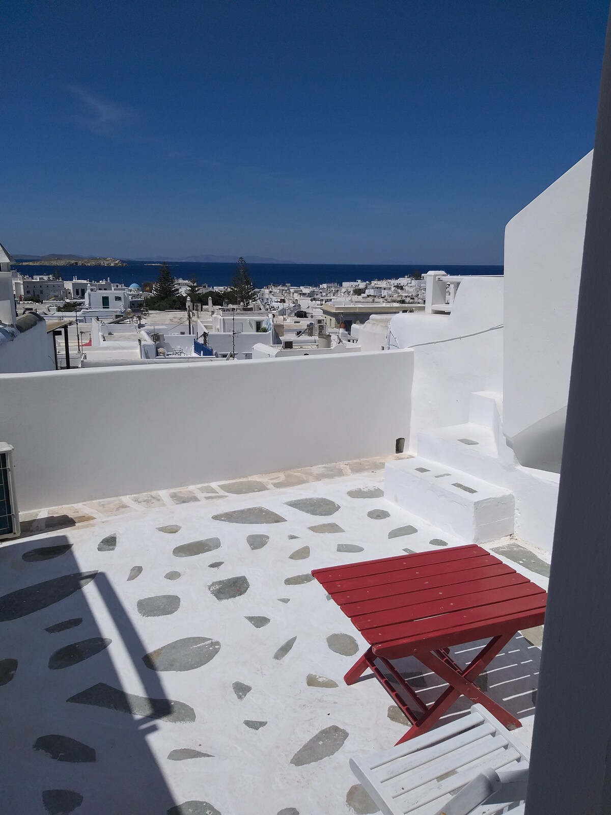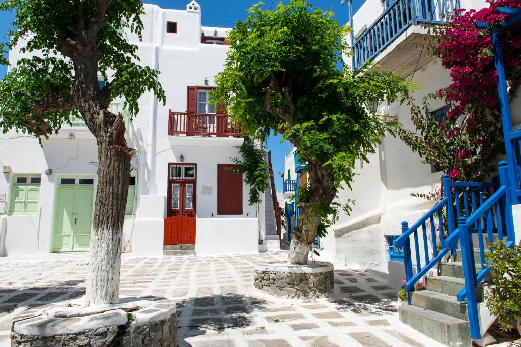 Huset er bygget i overensstemmelse med den kykladiske arkitektur og moderne indrettet og giver et behageligt ophold på en "græsk-chic" måde. Dens perfekte beliggenhed giver mange muligheder for at udforske den storslåede gamle bydel med de hvidkalkede kapeller, de berømte vindmøller og Lille Venedig, som kun ligger få skridt væk. Huset er designet med en aura af den ægæiske sommer og er fuldt udstyret, så vores gæster kan føle sig hjemme.