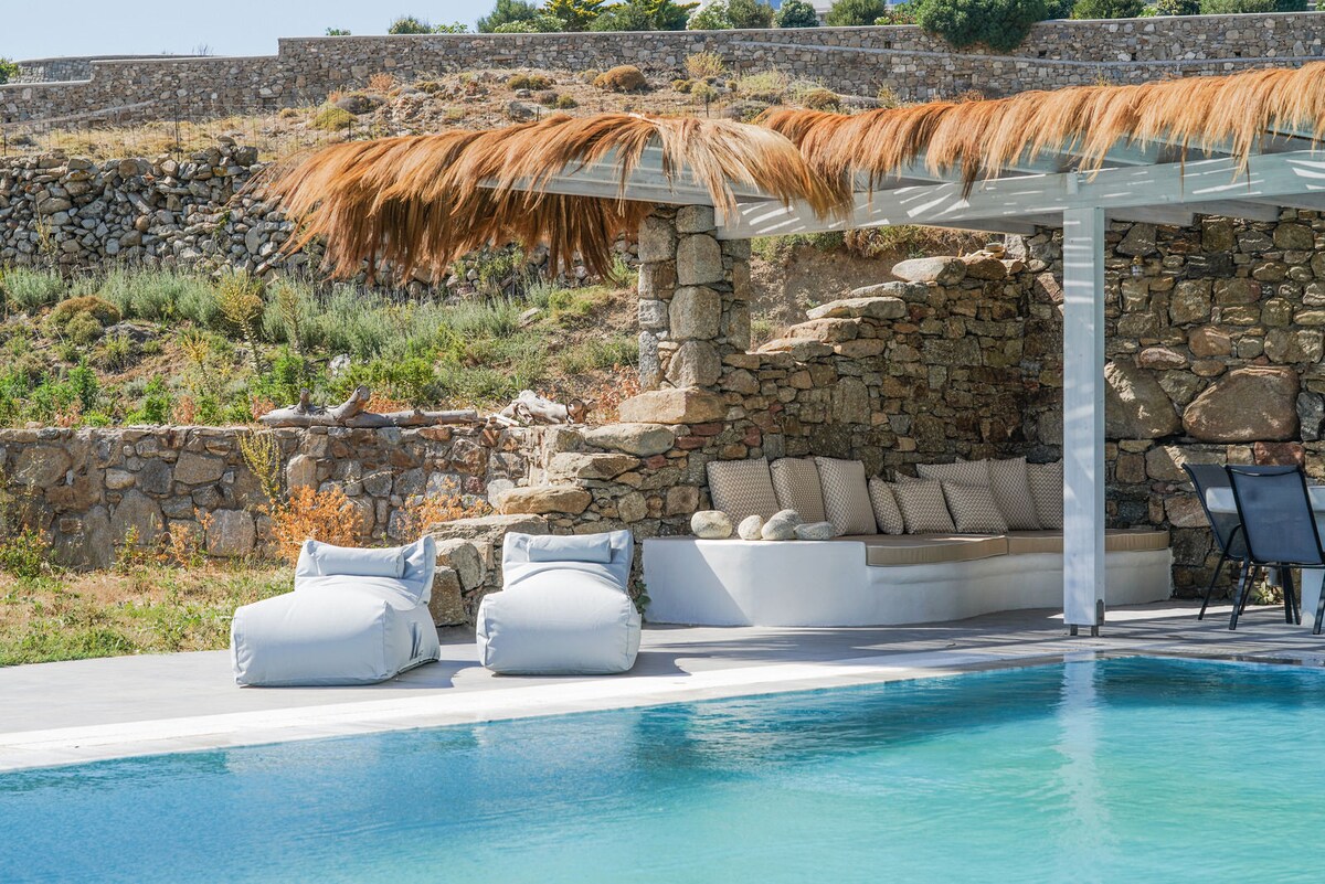 Bo i "Magdaline", et hyggeligt privat værelse, et af fire tilgængelige fristeder. Beliggende kun 15 minutters gang fra Paradise Beach. ✅Nyd en fantastisk panoramaudsigt over Det Ægæiske Hav. ✅Dit værelse har et smart-tv, hurtig wi-fi, en hårtørrer og en Nespresso-maskine. ✅Gæster deler en stor udendørs pool og en solbeskinnet terrasse. ✅Få adgang til et fuldt udstyret fælles køkken og en komfortabel indendørs lounge. ✅En dedikeret ejendomsadministrator er tilgængelig 24/7 for at hjælpe dig. ✅Oplev ægte mykonisk gæstfrihed.