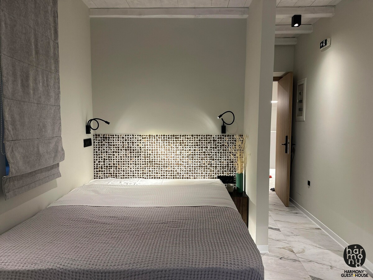 Dette unikke værelse, der tidligere fungerede som en stald, er blevet forvandlet til et drømmested for gæster, der søger ro og afslapning. Selvom det ligger i stueetagen af pensionatet, har den ikke en gårdhave eller balkon, men den er designet med kærlighed og opmærksomhed på detaljer, hvilket giver en idyllisk og unik plads til at udleve dine drømme. Indretningen giver en moderne æstetik, mens kuplen over sengen skaber en unik drømmeatmosfære.