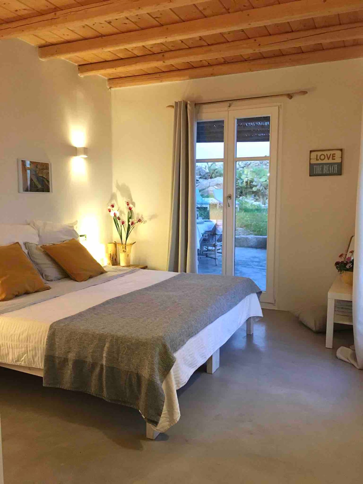 Beliggende i Pirgi, meget tæt på Super Paradise Beach. Værelset har en dobbeltseng og et badeværelse. Værelset har en separat indgang, og der er ingen forbindelse til huset. Døren til rummet fører ud til haven, og der er en stor swimmingpool.