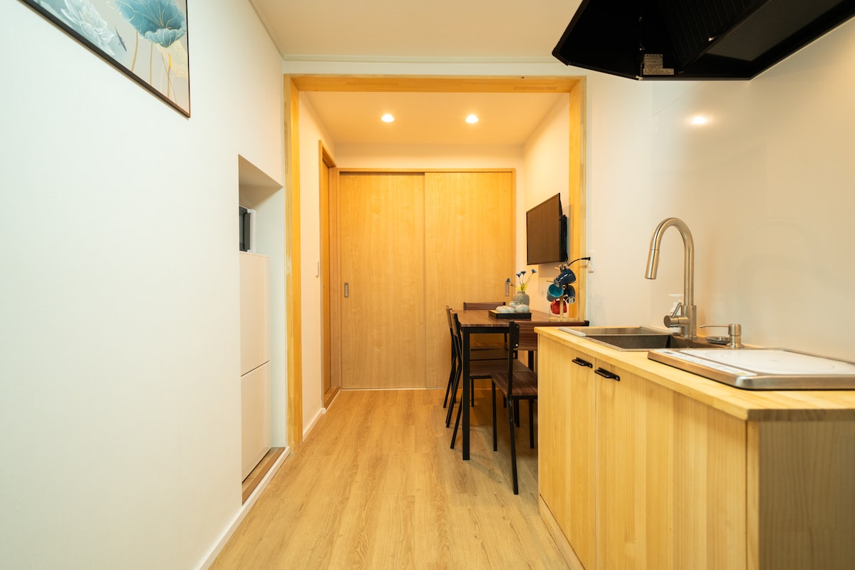 Et helt nyt hotel med gratis parkeringsplads inkluderet. Det er svært at finde et stort sted, hvor du kan bo med din familie i Japan. Men da denne hotellejlighed er en rummelig duplex, er det det perfekte valg til en familie- eller grupperejse. Dette værelse tilbyder alt, hvad du behøver. På værelset kan du også se Netflix og Amazon Prime gratis, når du vil. Det keder aldrig dine børn under dit ophold.