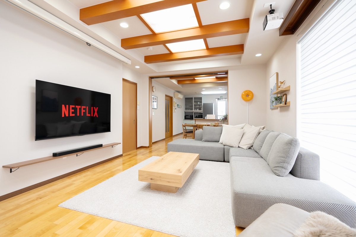 NYHED! 2 minutter til stranden / rummeligt 4LDK hus / gratis parkering til 2 biler / veranda BBQ & biograffilm