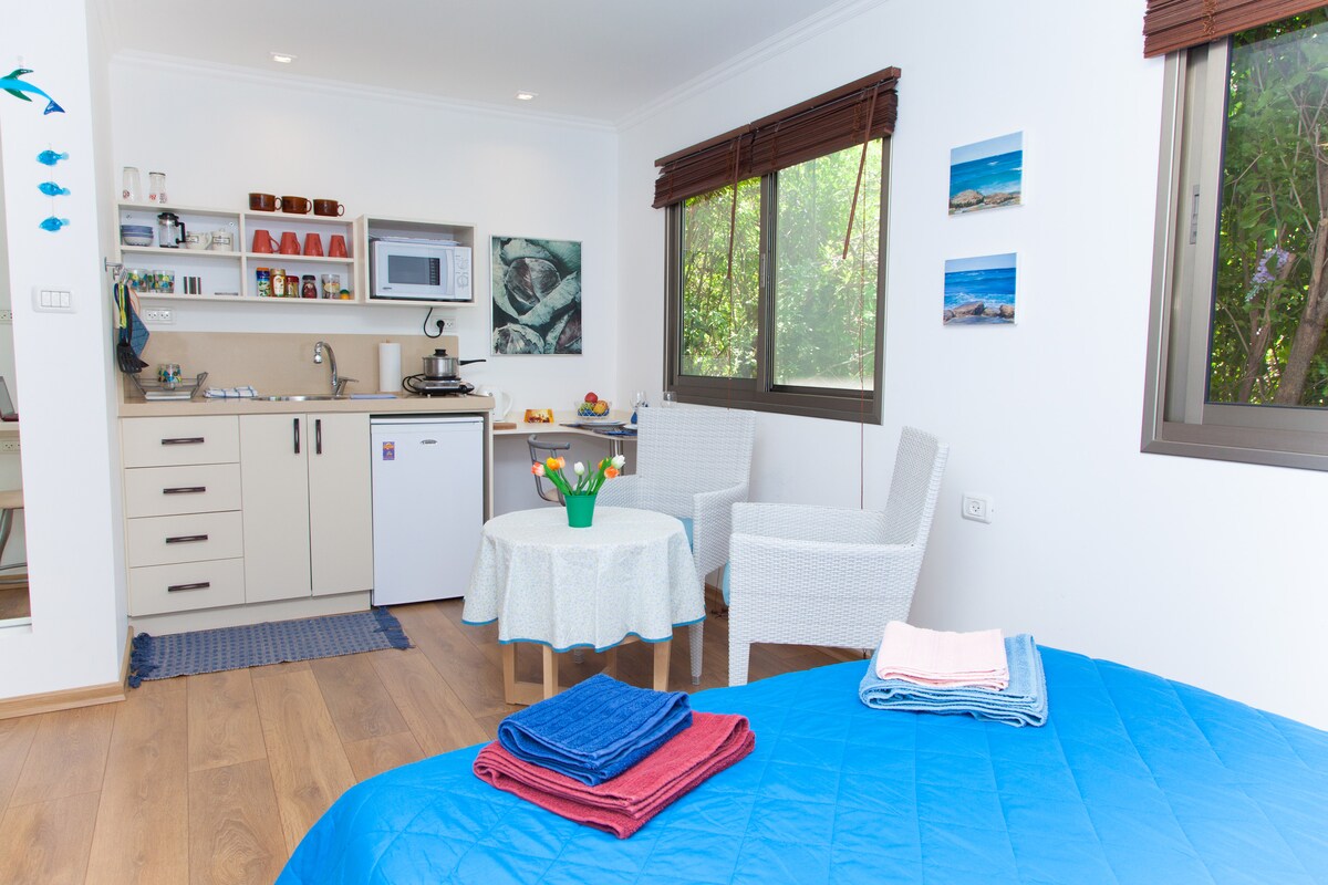 Vi inviterer dig til at bo i vores nye, smukt designede gæstebolig, kun en kort gåtur fra den fantastiske Shavei Zion strand. Dette private tilflugtssted har et fuldt udstyret køkken, hyggelig stue, komfortabelt soveværelse, moderne badeværelse og en rummelig balkon med spise- og opholdsområde. Nyd godt af højhastigheds-wi-fi, tv og kabelkanaler. Sen udtjekning er tilgængelig (afhængigt af tilgængelighed). Perfekt til par og unge familier (op til 4 gæster). Vi ser frem til at være vært for dig.