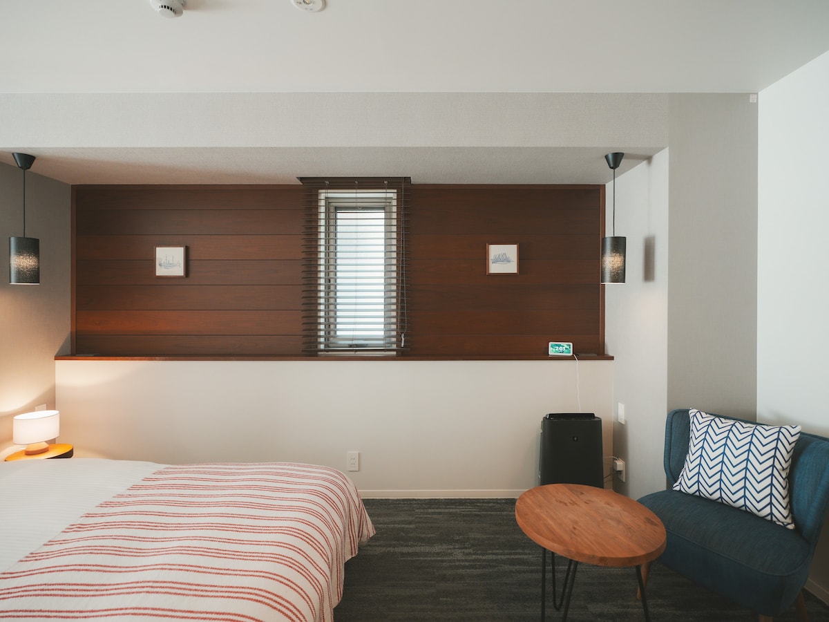 As you exit the elevator, artwork in the symbolic color red awaits you in a simple space with warm gray tones. The multilingual typographic artwork on each floor expresses "Hiroshima" in a different language, with a message of equality and openness to everyone in the world. In addition, the lighting in the guest rooms is all original. The gentle lighting is comfortable, and the simple space has been designed with a sense of cleanliness.