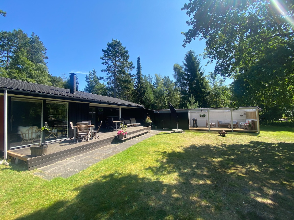 Dejligt familiehus. Sauna, strand, madområde.