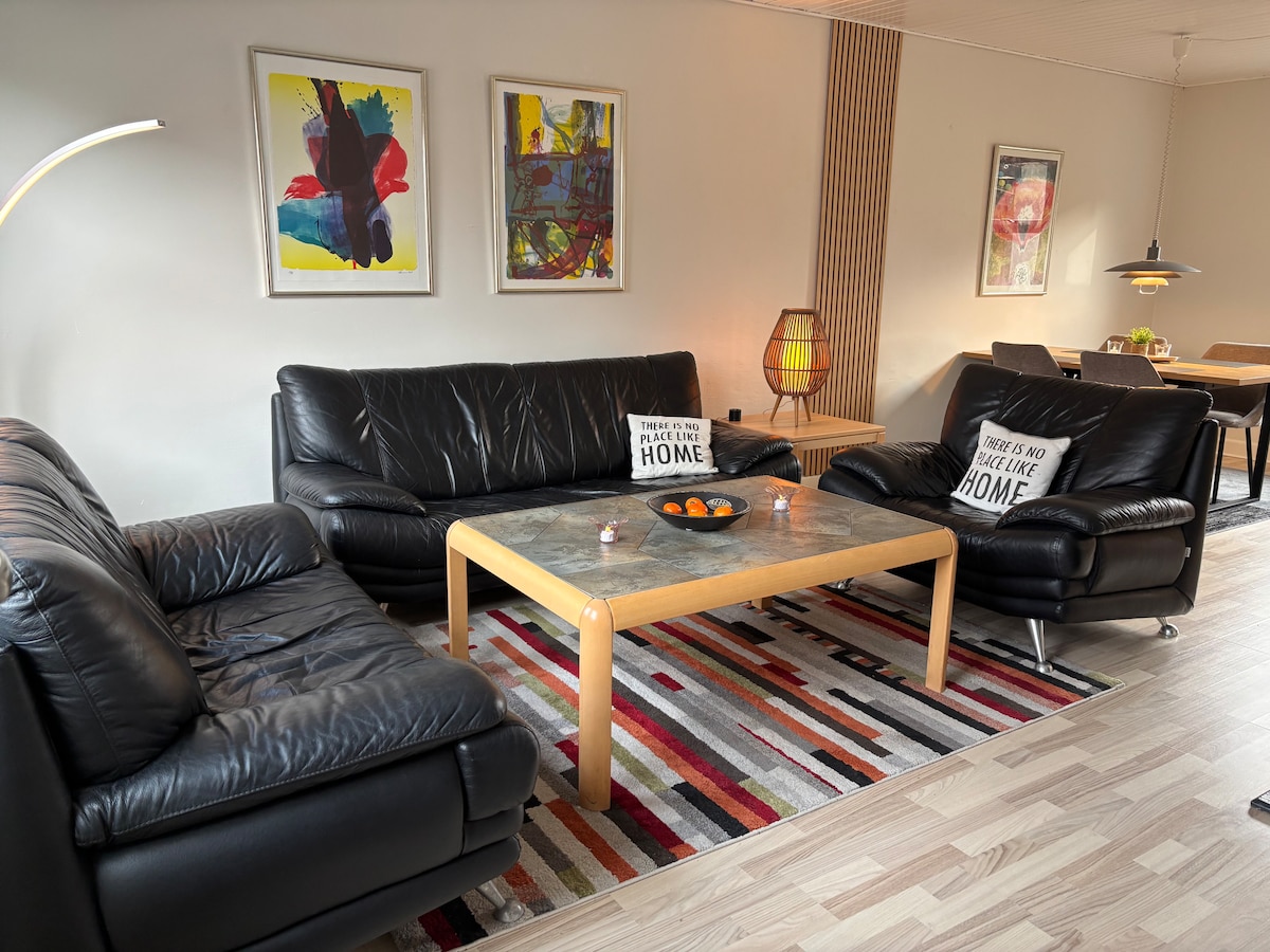 Familievenlig lejlighed med terrasse og spillesal