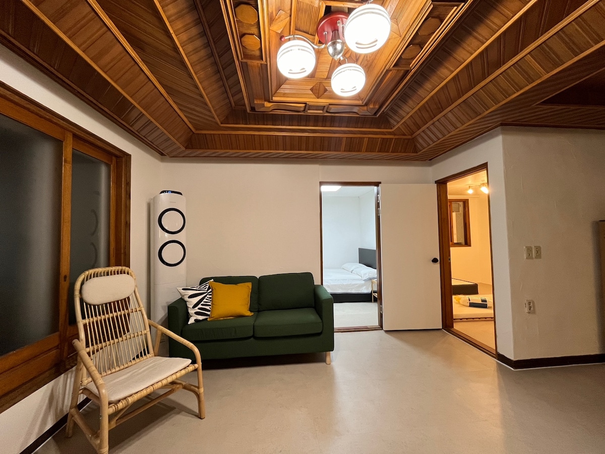 Relaxation er et sted for en afslappende dag, som navnet antyder. 🌿 Ejendommens højdepunkter Basis 2 personer kan bo her, op til 4 personer Hanok-minihus med stenvæg Yderligere gebyr på 20.000 KRW for to eller flere personer Hvis du bliver mere end 2 nætter, får du en rabat på 20.000 won per nat :) Udendørs grill til rådighed (brænderudlejning til rådighed) 15000 KRW Destinationer 🚗 i nærheden 7 minutters kørsel til Darangi Village (Plads med havudsigt på sydkysten) 5 minutters kørsel til Seomi Garden Jeg giver 📌 dig besked Medbring tandpasta, tandbørster og rengøringsmidler. Kæledyr er ikke tilladt Det er svært at komme ind, bortset fra antallet af personer, der har booket (selv et bekendtskabsbesøg ×)