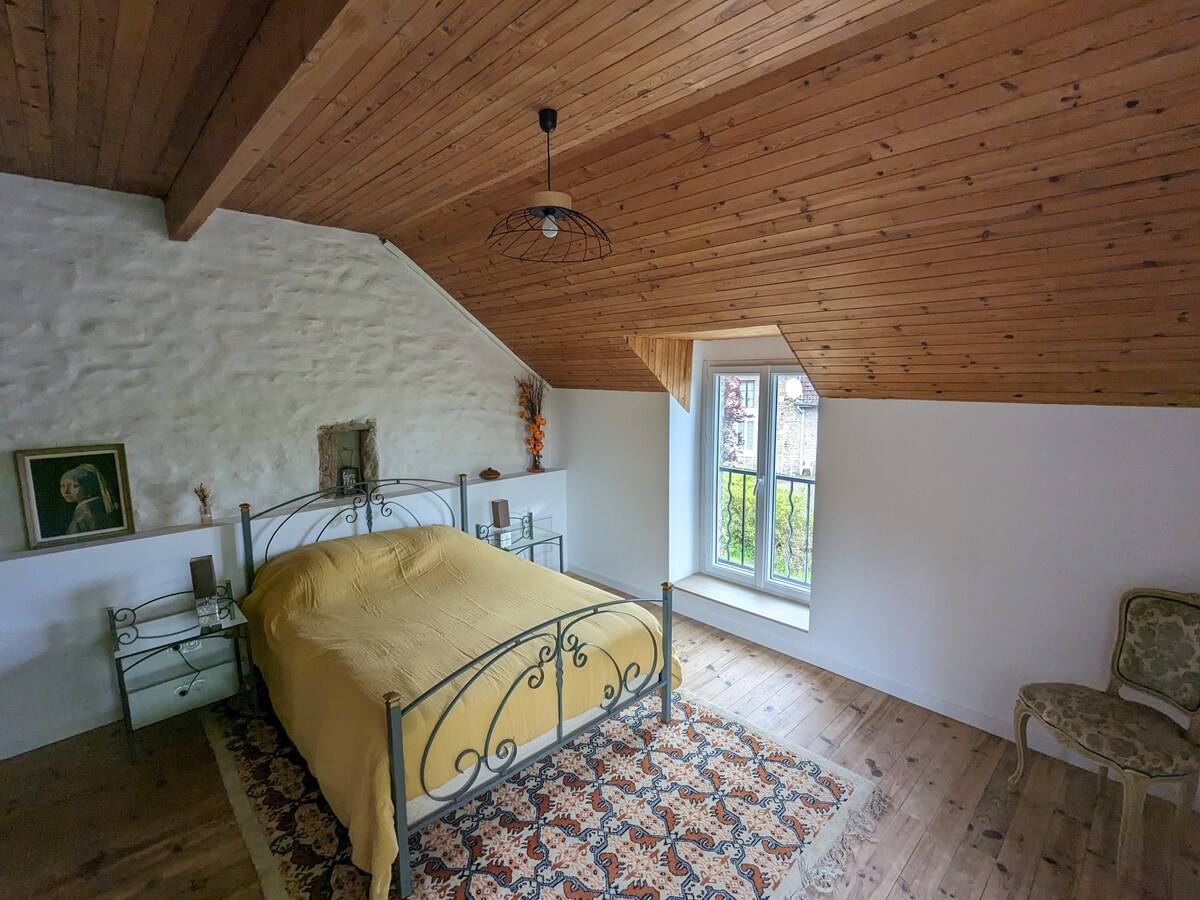 Slap af i dette lille hus, der støder op til vores hovedbolig, og som lige er blevet fuldstændig renoveret indvendigt. Dens varme side vil give dig mulighed for at tilbringe gode stunder, den har den særlige egenskab at have et soveværelse samt en hems under taget, så lofterne er lave på gulvet, og den lille adgangsdør til soveværelset kræver, at du kan bøje dig for at få adgang til den ... Vi leverer sengetøj og håndklæder.